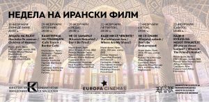 Во Кинотеката на Македонија од 18 до 23 февруари ќе се одржи Недела на иранскиот филм. Станува збор за филмови од поновата иранска продукција, од еминентни ирански режисери, директори на фотографија и познати актерски имиња кои имаат значајно место во светската кинематографија и имаат освоено голем број фестивалски награди.