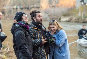Теона, Вук и Лабина Митевски на снимањето на филмот