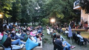 Освен присутните гледачи кои го исполнија дворот на Кинотеката, проекцијата на МИРНО ЛЕТО можеше да се следи и он-лајн преку лајв стримингот на линкот што го озбезбедуваме од нашите Фејсбук и Инстаграм профили, како и од кинотечниот јутјуб канал.