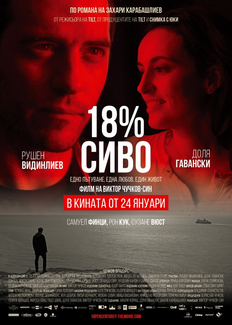 Бугарскиот фотограф Зак и неговата голема љубов Стела, следејќи ја заедничката мечта за поубав и поинтересен живот, заминуваат од Варна во Лондон. Но, по извесно време Стела ќе го напушти Зак. Во потрага по нова смисла во животот, Зак тргнува на необично патешествие од Лондон до Берлин. Ова е патувањето што ќе му ја открие вистината за неговата изгубена љубов, но ќе му донесе и непријатни откритија за самиот себе… Режисерот Виктор Чучков ни е познат по филмот ТИЛТ (Tilt, 2010), а 18% СИВО е снимен според истоимениот роман на бугарскиот писател Захари Карабашлиев, кој доживеал 22 изданија во Бугарија и ја добил наградата „Вик“ за роман на годината. 18% СИВО минатата година учествуваше на Интернационалниот фестивал во Софија и скопскиот Фестивал на европски филм Синедејс. Македонски копродуценти на филмот (малцинска копродукција) се Владимир Анастасов и Ангела Несторовска.