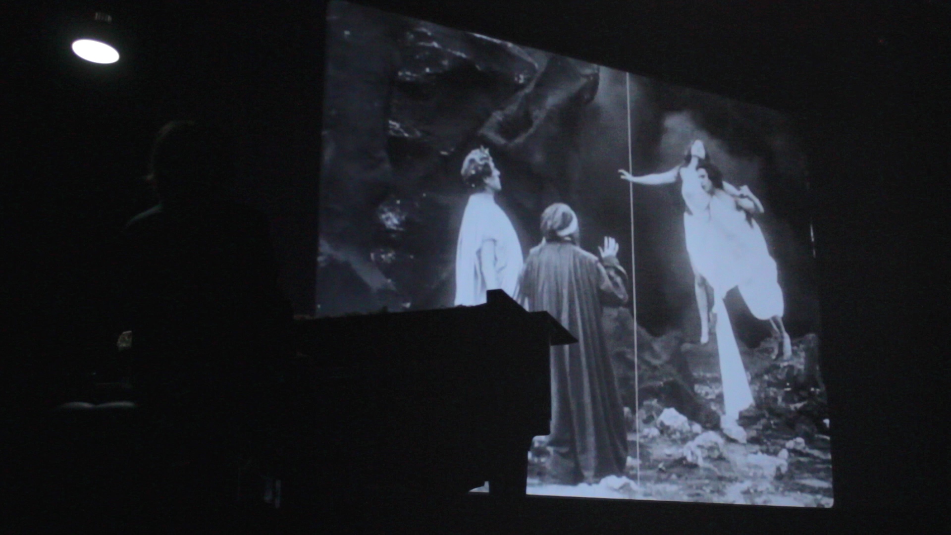Филмот ПЕКОЛОТ го претстави професорот Марко Пешетели (Marco Pescetelli), лектор по италијански јазик и голем познавач на историјата на италијанската кинематографија. Пешетели во неговиот вовед во филмот наведе дека ПЕКОЛОТ, како и други црно-бели дела од немата ера на филмот, всушност и не биле толку црно-бели и неми: делови од филмовите биле боени рачно, а проекциите на филмовите биле редовно придружувани со оркестарска музика или пијано придружба. Професорот Пешетели спомена и дека на тие проекции во пионерското доба на кинематографијата во Италија имало луѓе зад платното кои на гледачите им ги читале репликите или дидаскалиите од филмот (обично испишани како телоп меѓу сцените), бидејќи во публиката во тоа време имало многу неписмени, а кога содржината тоа го барала, „произведувале“ и звуци и шумови.