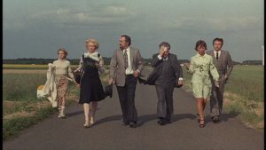 Како своевиден омаж на русоовото „враќање кон природата“, Буњуел ги слика јунаците на филмот и во секвенца што се повторува неколку пати како некаков рефрен (тоа е и последната сцена), како дотерани (за на вечера) одат низ природа, надвор од градот, но никако не скршнуваат од асфалтот додека навидум бесцелно талкаат. И на крајот секогаш завршуваат во куќата на првата фрустрација (првиот неуспешен обид да вечераат), како место на нивниот вечен „опскурен предмет на желбата“, а каде природата (градината) по буржоаски вкус ја уредува градинар кој всушност е бискуп – пастирот на душите што го познаваат само по облеката.