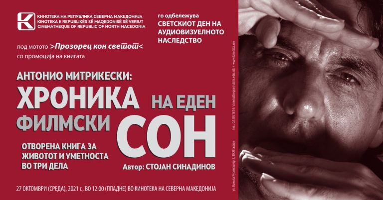 На 27 октомври (среда) Кинотеката на Македонија го одбележи Светскиот ден на аудиовизуелното наследство и ја промовираше книгата АНТОНИО МИТРИКЕСКИ: ХРОНИКА НА ЕДЕН ФИЛМСКИ СОН на