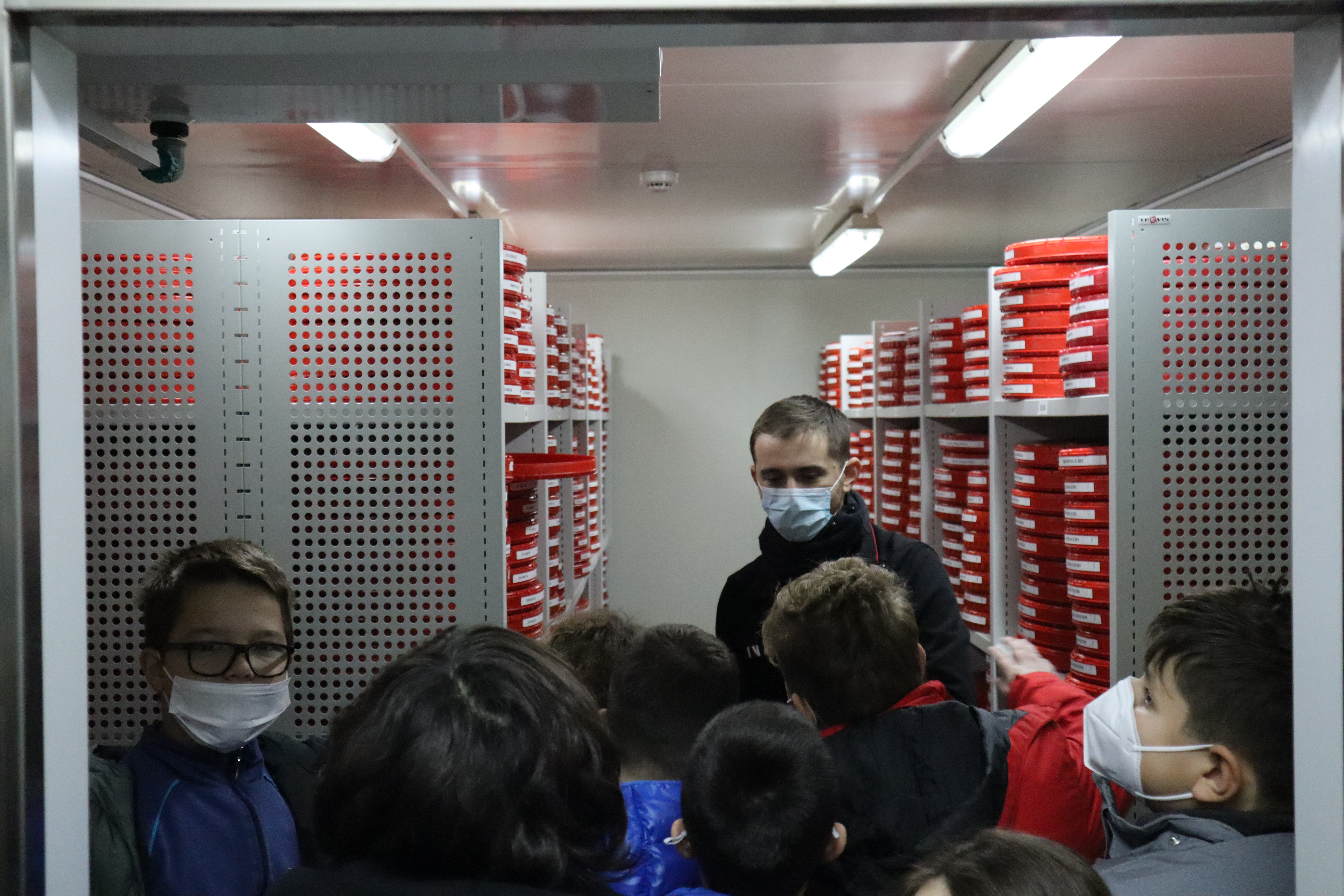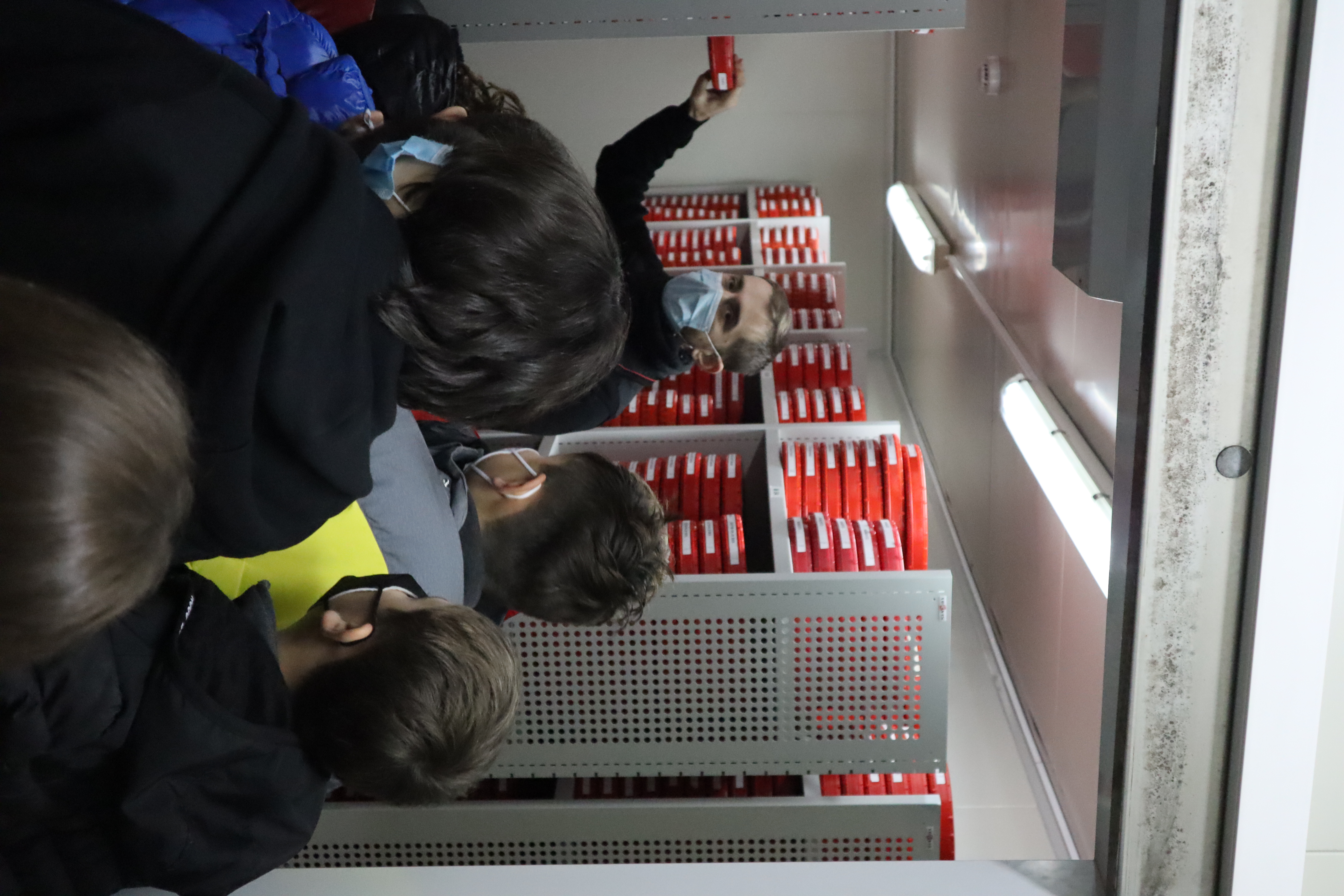 At the end of the visit – all together they visited the film depots and the special chambers of the Cinematheque, where the film tapes and other materials are kept, and talked about the 35 mm film tape – and followed a control session for reviewing the film tape. In addition, they saw the collection of digital film media where mandatory digital copies of films from Macedonian production are kept.
