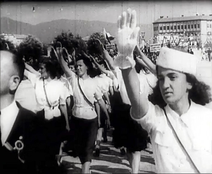 Репортажа со нарација во оф-тон, со текст што го чита спикерка и со оригинален звук и слика од говорот на министерот за внатрешни работи на Царството Бугарија – Петар Габровски, за Првиот национален спортски собир што се одржал во Скопје кон средината на октомври 1941 г.