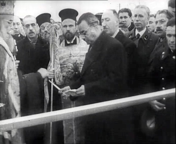 Нараторката соопштува дека на свеченото отворање присуствуваат и „министрите Василев и Горанов“, како и министерот за јавни згради, патишта и јавни работи во владата на Богдан Филов – Димитар Василев.