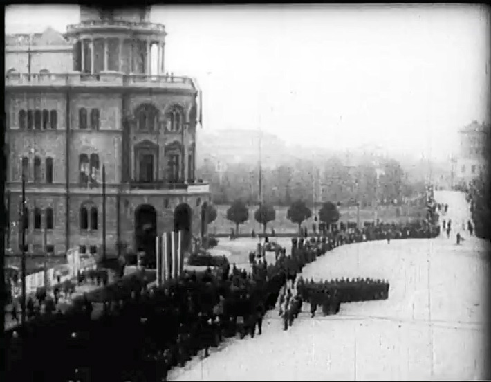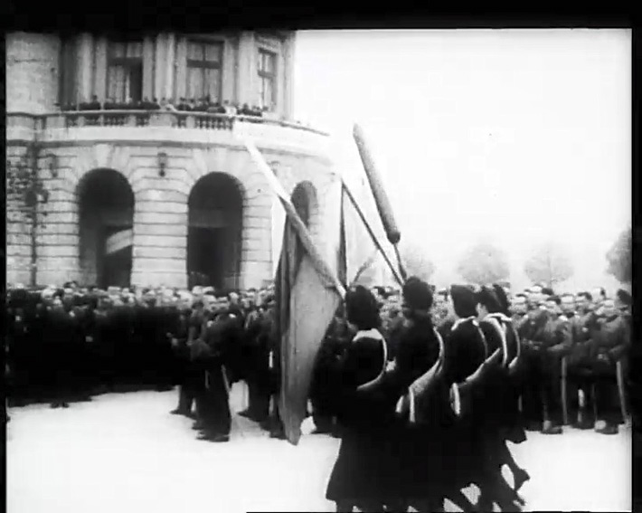 Репортажа со нарација во оф-тон, со делумно оштетена тонска шпалта, со текст што го чита спикер, реализирана на 1 ноември 1942 година (ден кога Православната црква го чествува св. Јоан Рилски, заштитник на бугарскиот народ, а воедно и патрон на народните просветители), за парадата одржана на централниот скопски плоштад „Цар Борис Трети“ (денес плоштад „Македонија“), по повод празникот на народните просветители („народните будители“).