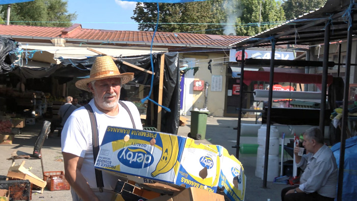 Краток игран филм за еден средовечен човек, собирач на картонски отпад. Прикажано е неговото секојдневие, по улиците, пазарите и продавниците во Скопје. Човекот оди низ градот и собира картони. Тој е постојано со слушалки во ушите и слуша музика, бидејќи му пречи бучавата од автомобилите. Собраните картони, некогаш и до 250 килограми, ги носи на мерење и за нив добива пари.