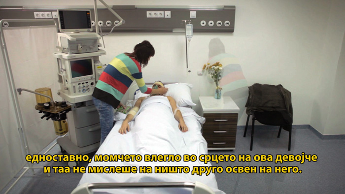 Внуката со внимание ја следи приказната што ѝ ја раскажува дедото. На крај заспива, задоволна од тоа како истата завршува.