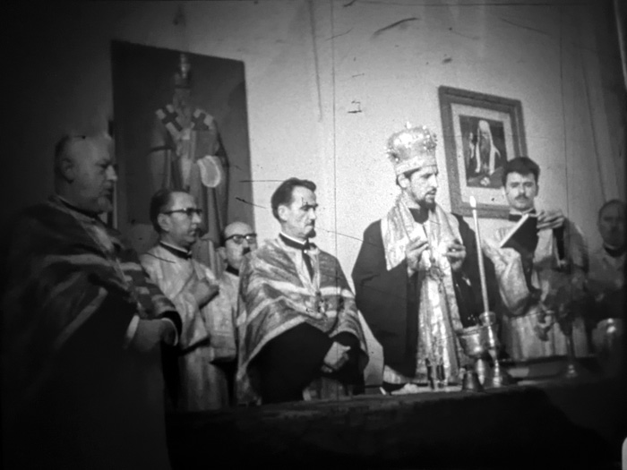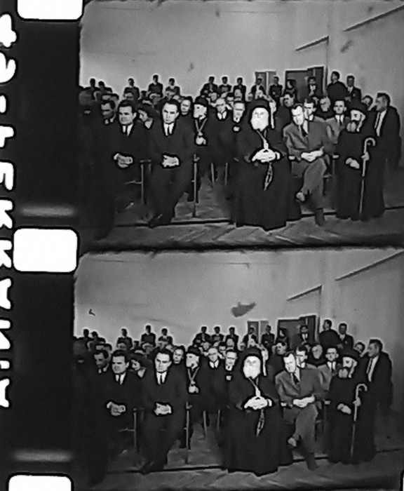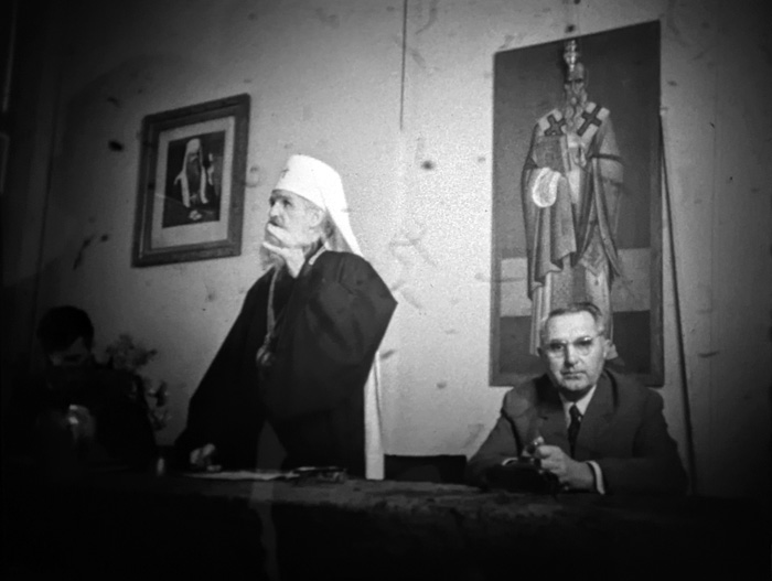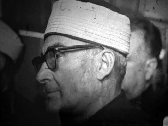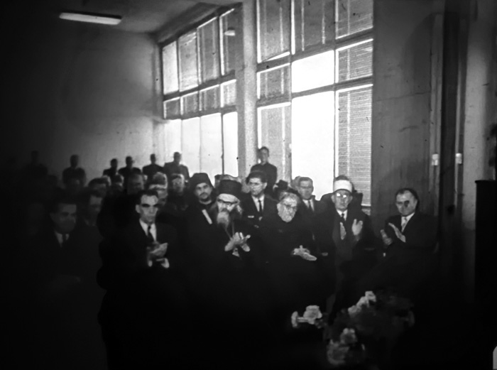Филмскиот материјал прикажува сцена со свештеници, оџи и попови, кои учествуваат на јавен говор пред бројна публика, носејќи традиционални облеки што ја отсликуваат нивната верска припадност. Настанот се одвива во атмосфера на свеченост и сериозност, но за целосна анализа и историски контекст, неопходно е да се идентификуваат лицата кои учествуваат и точната година на снимањето. Оваа информација би помогнала да се разјасни религиозниот и културниот контекст, како и значењето на овој собир во пошироката историја на меѓурелигиски односи.