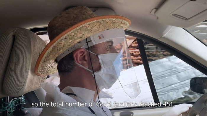 Приказна за едно четиричлено семејство од Скопје за време на пандемијата Ковид -19. За да си го олеснат карантинот кој е спроведен за време на вирусот и мерките кои се препорачани, се упатуваат кон Охрид, на гости кај баба. Со идеја дека децата ќе си играат во дворот, ќе се бањаат во езерото а мајката ќе си вежба свирење на харфа. Но, како поминуваат деновите ситуацијата станува се понеподнослива. Таткото е се понеподнослив со мерките што ги спроведува, за да го заштити семејството од вирусот. Тој смислува семејна игра со строги правила, за да може се да држи под контрола. Кој не ги почитува правилата на играта оди во изолација. На крај тој останува сам.