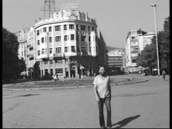 Маж седи на клупа, на кејот на Вардар, и ја изговара познатата мисла на Хераклит „Сè тече, сè се менува“. Станува и шета низ центарот на Скопје. Гледа во излогот на една книжарница, во графитите испишани по ѕидовите и луѓето што се движат. Повторно седнува на клупата и ја изговара истата реченица „Сè тече, сè се менува“.