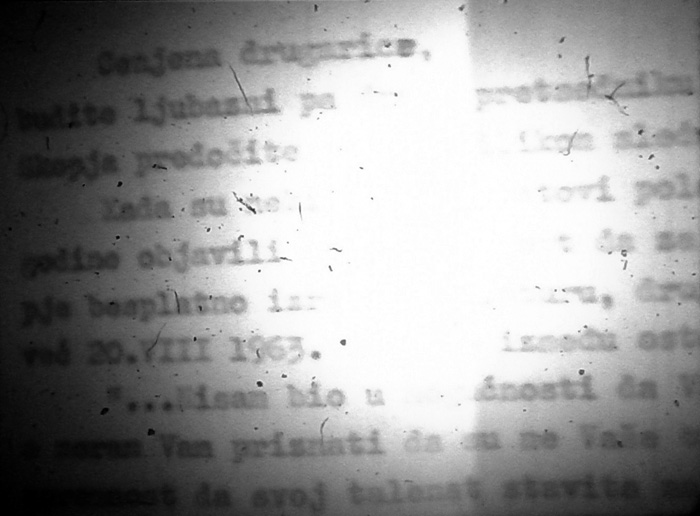 Особено интересно е што во повеќе наврати се прикажува писмо, во кое, со тешкотии, може да се прочита дека станува збор за молба до институција за материјална поддршка при поставување на изложбата. Писмото започнува со зборовите „Cenjena drugarice, Budite ljubazni…“, што додава човечка димензија и ја истакнува борбата и посветеноста на уметникот во остварувањето на својата визија.