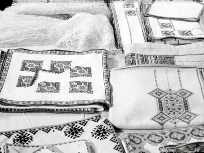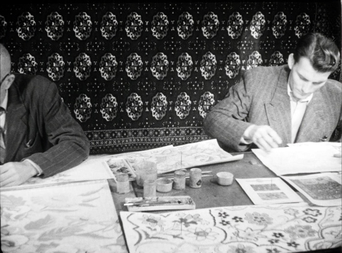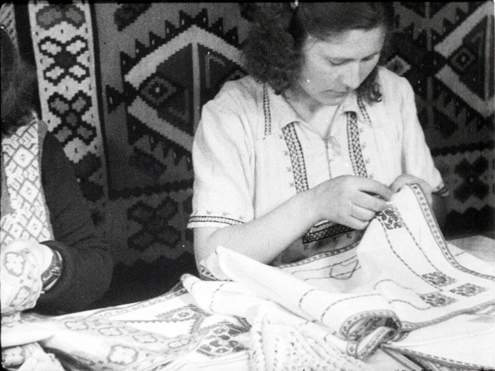 Нецелосен прилог за производство на разни рачно изработени предмети во фабриката „Македонски фолклор“, во Скопје. Прилогот започнува со швенк на жени кои везат и продолжува да бележи готови украсни везови. Понатаму, во средно крупен план, прикажани се двајца мажи кои цртаат цветни мотиви за везовите. Во последните кадри, прикажана е рачна изработка на теписи со народни мотиви.