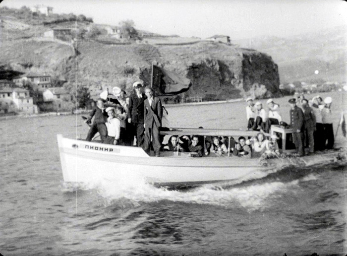 На роденденот на Маршал Тито, кој официјално се славеше на 25 мај, пионерите на Охрид го добиле својот прв брод – подарок од претседателот на владата на НРМ, Лазар Колишевски. Краткиот нецелосен прилог започнува со построени пионери во морнарски униформи во тотал, покрај брегот на Охридското Езеро. Преку менување на неколку планови се нижат кадри од пионерите во строј, пионерка зборува на говорница, пионери со знамиња, влегување во пионерскиот брод и пловат по езерото. Во крупен план прикажан пионер зад кормилото на пионерскиот брод.