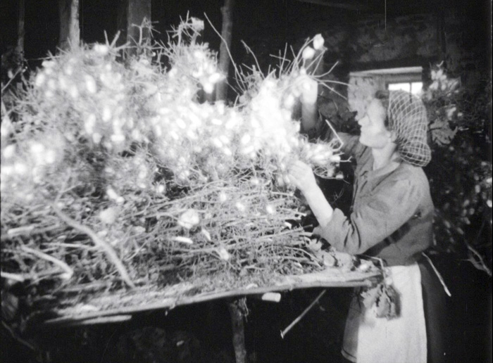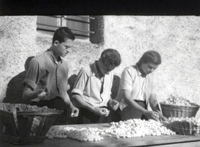 Прилог за одгледување на свилена буба во село Богданци, Гевгелија.  Во почетниот кадар камерата швенкува по насадите од црници. Задругарите ги сечат гранките од црниците и ги пренесуваат со коњска запрега до селото. Тенките гранчиња кои потоа се одвојуваат, служат како храна за гасениците. Одгледувачите на свилена буба ги собираат кожурците и ги предаваат на откуп. Во свиларска фабрика се печат кожурците пред да станат предмет на индустриска обработка.