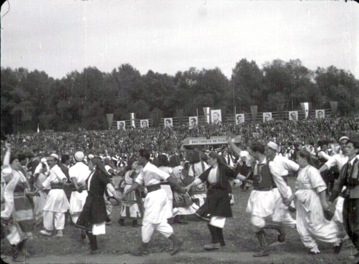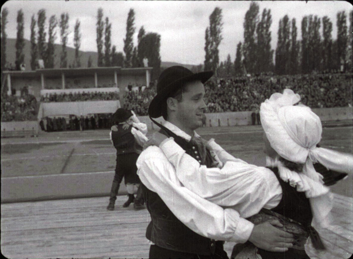 Во Скопје, по повод 11 Октомври, денот на Народното востание на Македонија, се одржува фестивал на народни игри и ора. На фестивалот учествуваат ансамбли од неколку републики и покраини во Југославија. Тапанар во почетниот кадар најавува машка албанска народна игра. Потоа, придружени од звуците на зурла, се изведува машка народна игра од Македонија. Камерата на моменти ја регистрира многубројната публика која го следи фестивалот и аплаудира. Следува мешана машка и женска народна игра од Херцеговина и игра во парови од Војводина. Настанот е следен и од Лазар Колишевски и Димитар Влахов во крупен план. Изведба на мешана народна машка и женска народна игра од Србија. Кон крајот, групна заедничка народна игра на сите ансамбли.