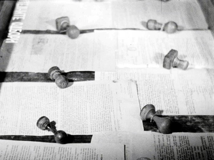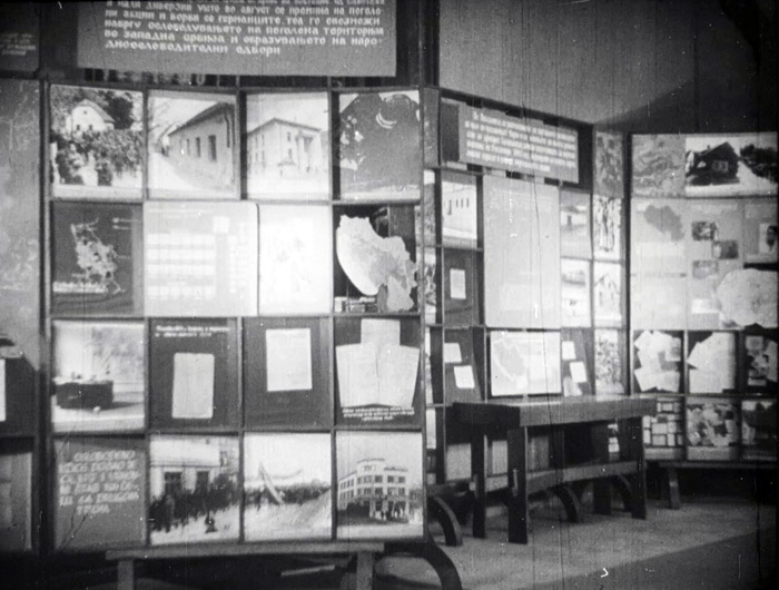 Нецелосен прилог од отворена подвижна изложба за Народните одбори, како органи на револуционерната народната власт, формирани во текот на НОВ, меѓу 1941-1945 година. Швенк по паноата од фотографии и документи. Како дел од изложбениот простор прикажани се документи, за потеклото, развојот и активностите на одборите, извештаи, заклучоци и сл. Кадар од изложени печати, кои ја потврдувале  автентичноста на документите. Во последните кадри од прилогот прикажани фотографии од членови на народните одбори.