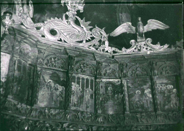 Краток нецелосен прилог снимен во еден од најзначајните споменици на културата во Скопје, црквата Св. Спас. Иконостасот на оваа тробродна црква подигната во XVII век, работен 12 години, е дело на резбарската група на врвните мајстори на занаетот Петре Филиповски – Гарката со неговиот брат Марко и Макарие Фрчковски од селото Галичник. Швенк по мошне убава уметничка резба во која е изработен иконостасот, долг 10 а висок 6 метри. Детали од длабоката резба на ореово дрво, во која се проткаени мотиви од Стaриот и Новиот завет, поврзано со декоративни елементи од листови, цвеќе, геометриски орнаменти, фигури од растителниот и животинскиот свет.
