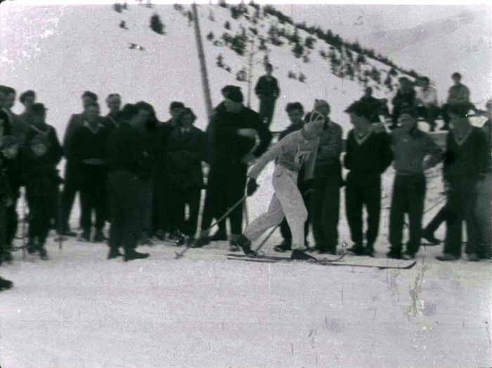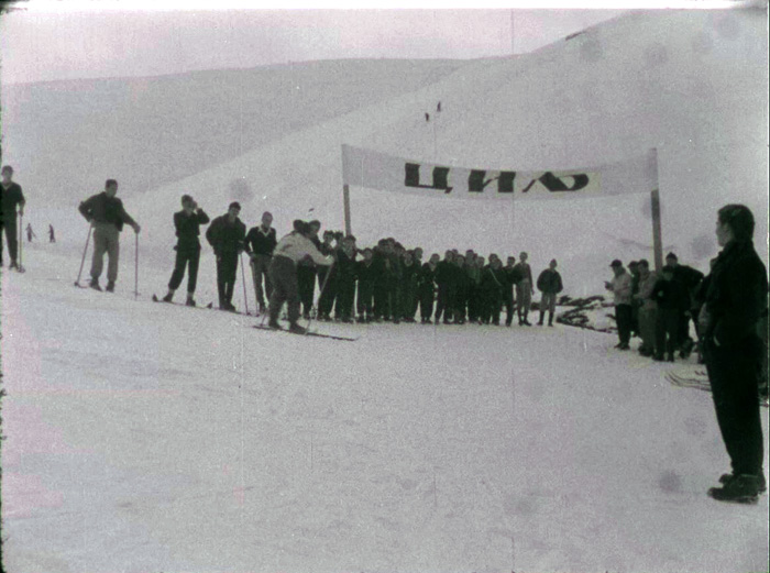 Нецелосен прилог од натпревар за младинско првенство на ФНРЈ (Федеративна Народна Република Југославија) во скијање, на терените на Попова Шапка. Тотал и швенк на падините на Попова Шапка. Натпреварот во слалом, на млади категории натпреварувачи во машка и женска конкуренција, се одвива на патека на 12 км. Старт на возење на јуниорите и пристигнивање на целта. Во неколку кадри прикажани фрагменти од конфигурацијата на теренот и возењето на натпреварувачите на оваа мошне напорна дисциплина, на патека обележана со капии. Во последните кадри, во крупен план, камерата регистрира две натпреварувачки во слалом за жени.