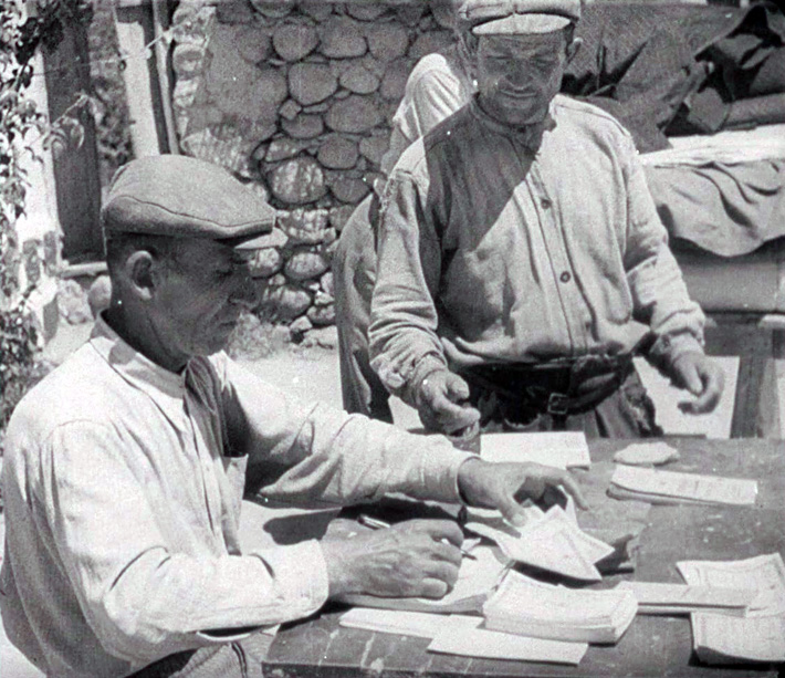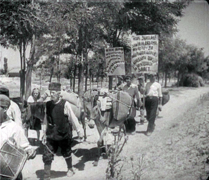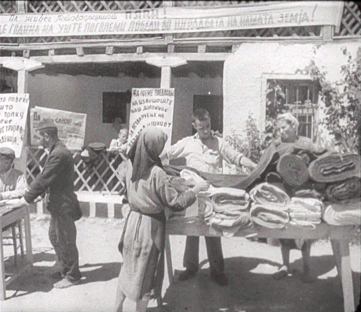 Приказ на откупот на задолжителните вишоци на жито од земјоделските производители, од реколтата во 1947 година. Во прилогот преовладуваат средни и америкен планови, со постојано движење во кадарот и континуитет на дејствието. После богатата жетва, во тиквешкото мало село Марена, производителите меѓу првите ја завршиле вршидбата и се подготвуваат да го предадат својот слободен вишок жито на државата. Во откупните станици, за предадените килограми жито, на земјоделските производителите им се издава соодветна противредност изразена во бонови, за привилегирано снабдување со рационализирани индустриски производи. Со боновите, селаните купуваат текстил, обувки, земјоделски алатки и други индустриски производи.