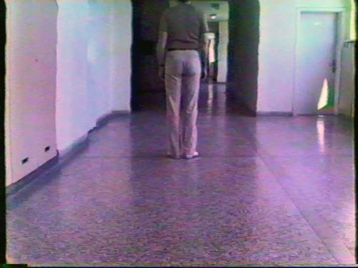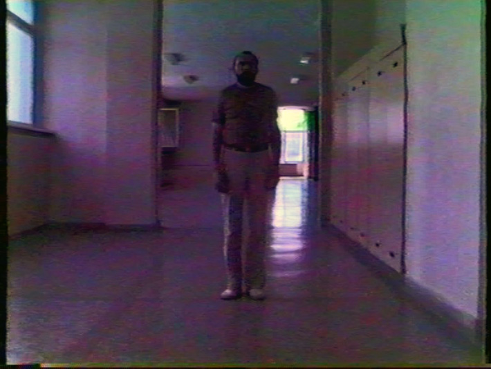 Прикажани се машки нозе како чекорат по пат со камчиња. Мажот стигнува во училиште и стои во ходникот.