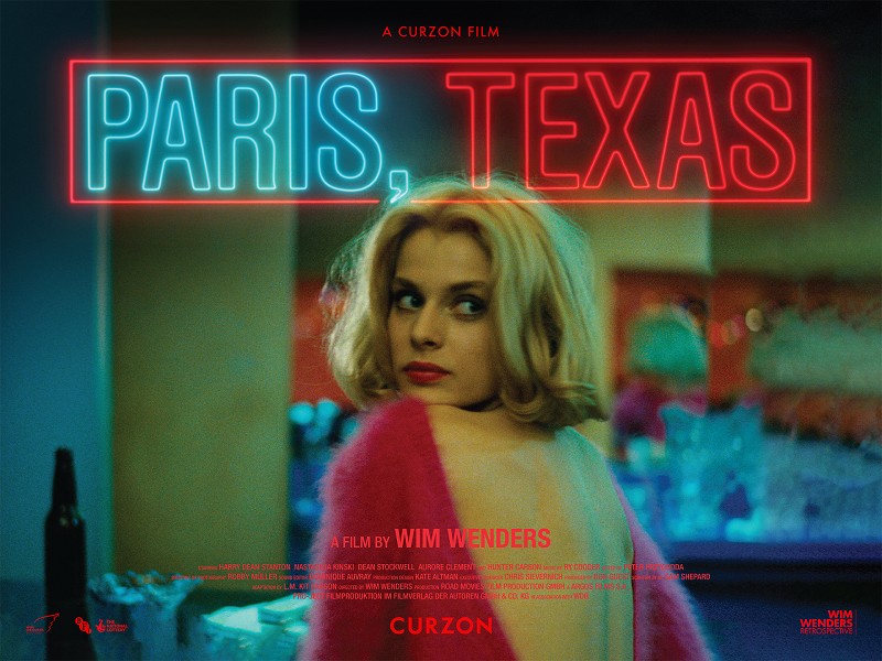 ПАРИЗ, ТЕКСАС е трогателна студија на карактери напишана од реномираниот американски драматург Сем Шепард. Ова е најпознатиот road филм на Вендерс. Тоа е едноставна и спора приказна –медитативно аудио визуелно патување низ американските дистописки пејзажи, преку кое Вендерс и Шепард успеваат да направат деконструкција на митовите за мажественоста и американскиот сон.