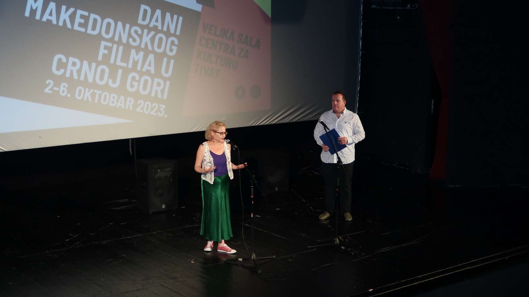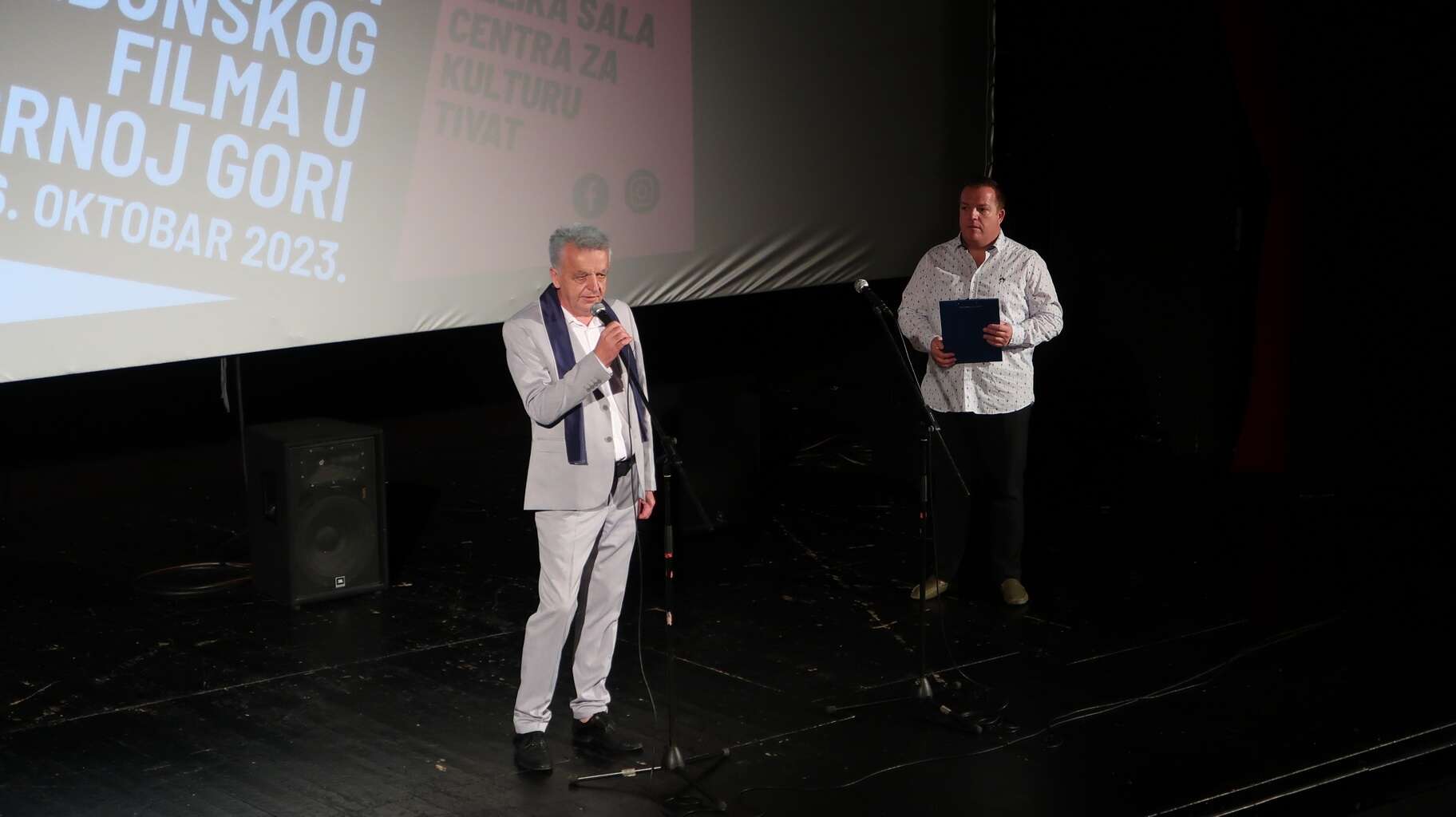 Manifestimin e hapi drejtori i qendrës kulturore në Tivat, Goran BozHoviq, i cili u uroi mirëseardhjen kolegëve nga Maqedonia e Veriut dhe kolegëve të Kinotekës së Malit të Zi.