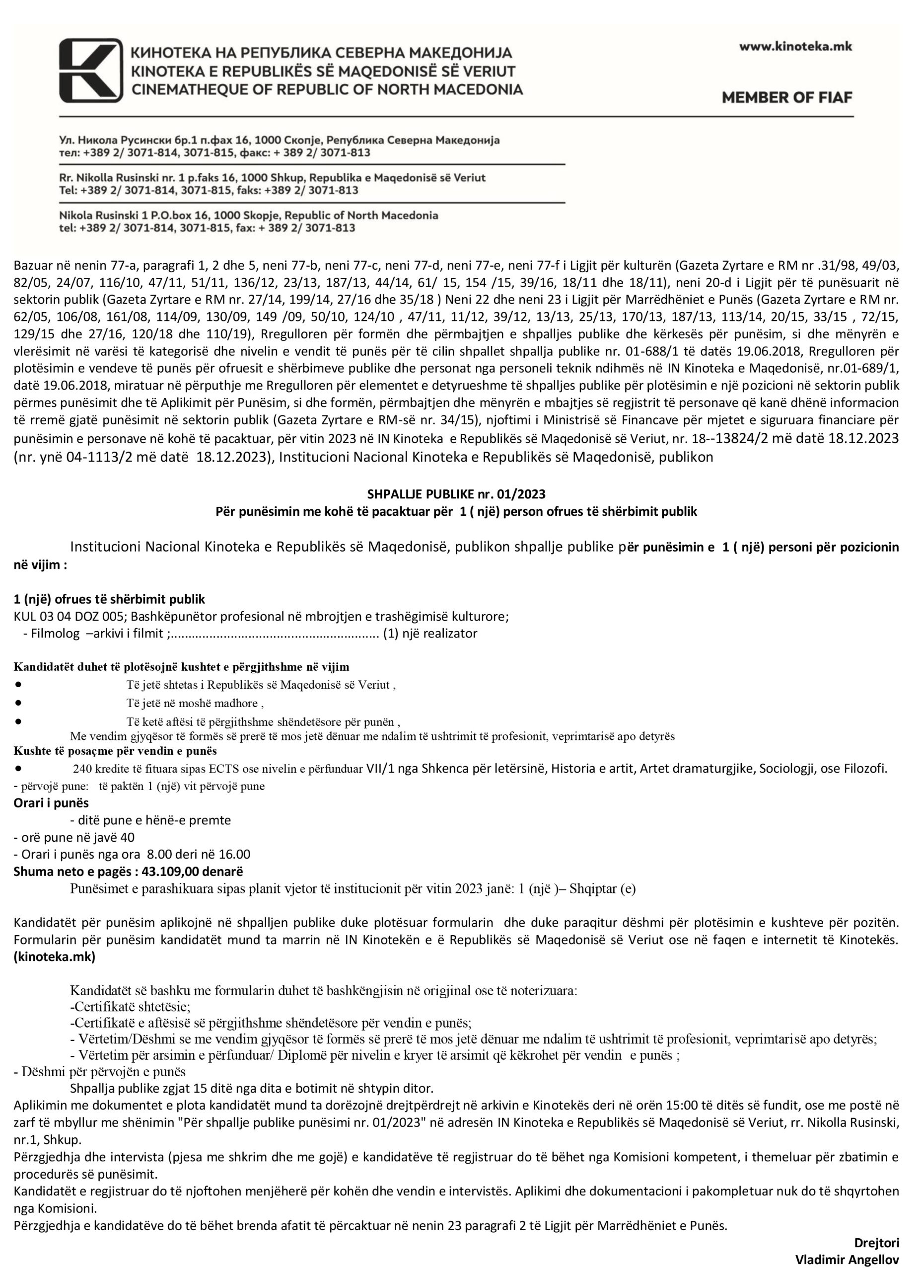 Преземете: Shpallje publike për punësimin me kohë të pacaktuar për 1 ( një) person ofrues të shërbimit publik
